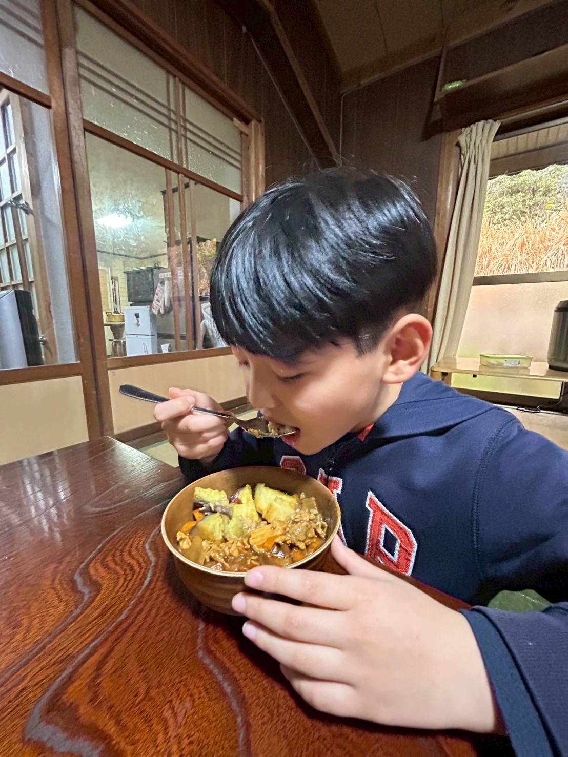 ごはんの時間は、前回みんなで掘り起こした じゃがいもを使ったトマト鍋。