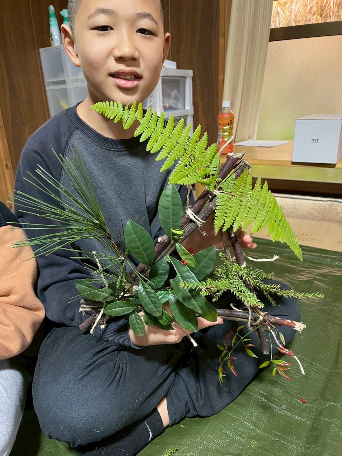 松ぼっくり、なんてんの実、枝、松、葉っぱ、つた。。。
