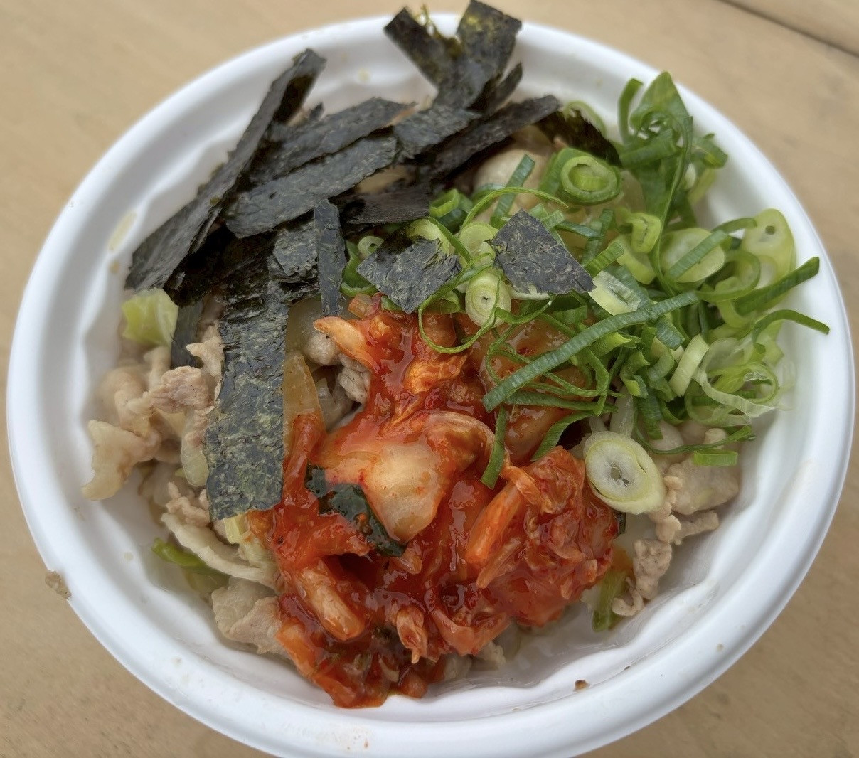 お昼ごはんは手作りの豚丼を野外で食べました。