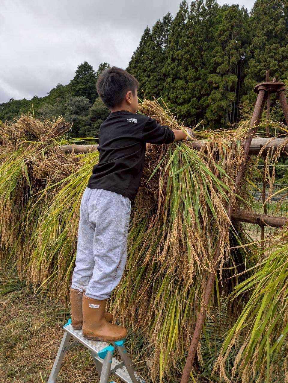*刈った稲を天日干し。美味しくなーれ
