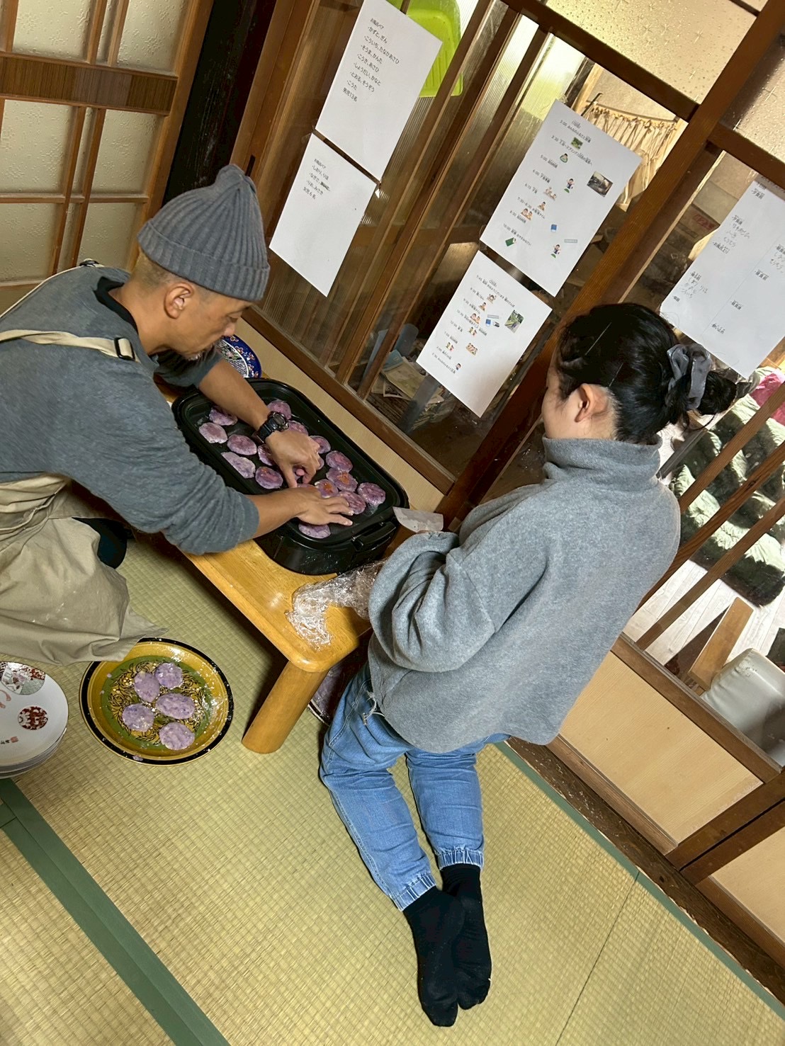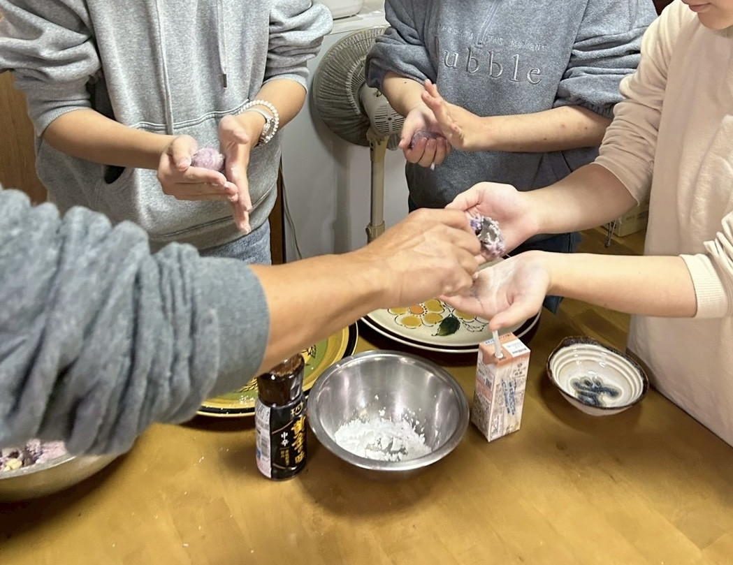 10月にみんなで掘った「紅芋」で紅芋もちを。