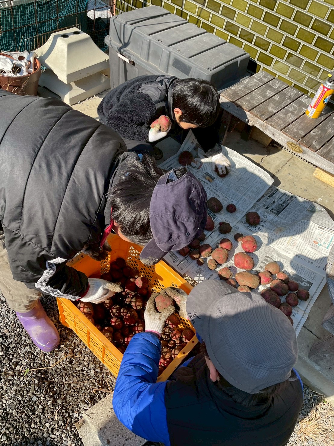 *掘ったじゃがいもは保存のため天日干し。勉強になるね。