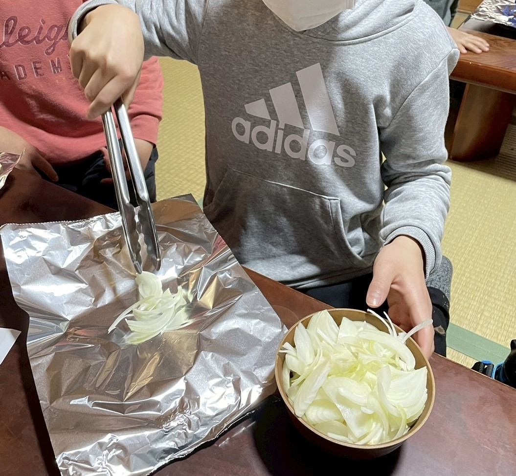 自家製の玉ねぎもじっくり焼くと甘くなりご馳走に。