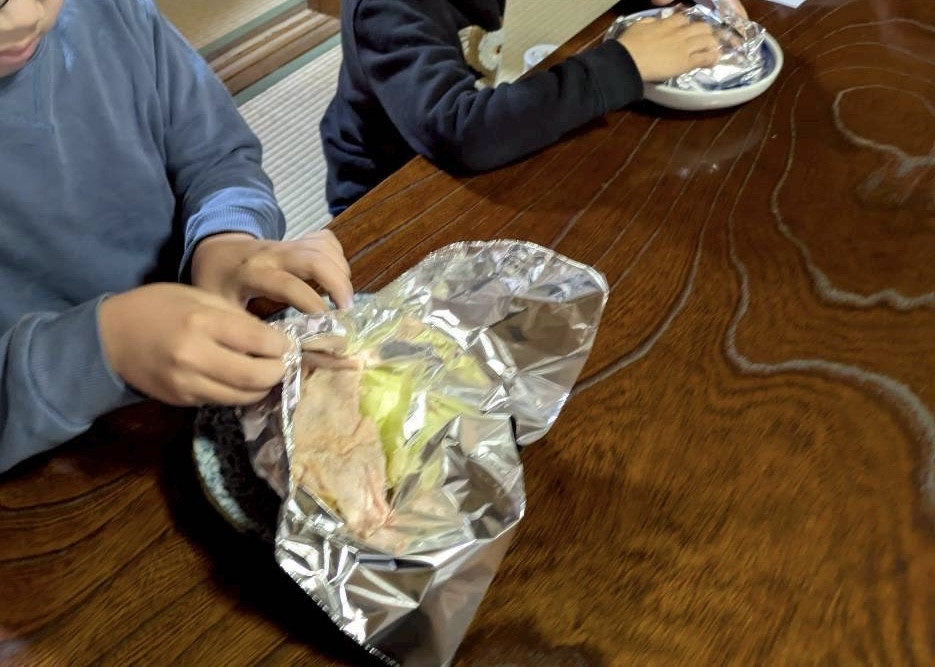 付け合わせにはみんなで掘り起こしたじゃがいもも。