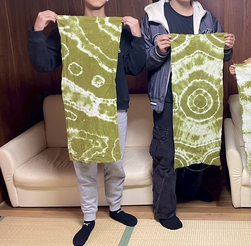 発展学習として日本手ぬぐいを染めて