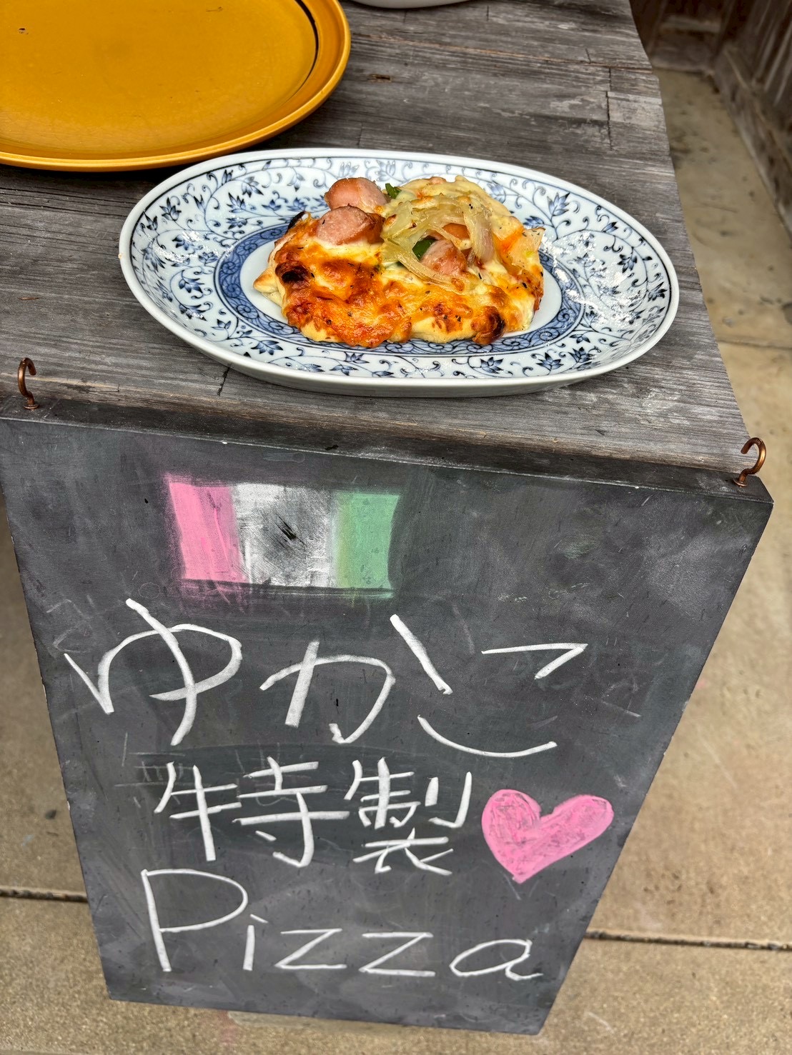 子どもが描いてくれた看板。遊び心もいいね。