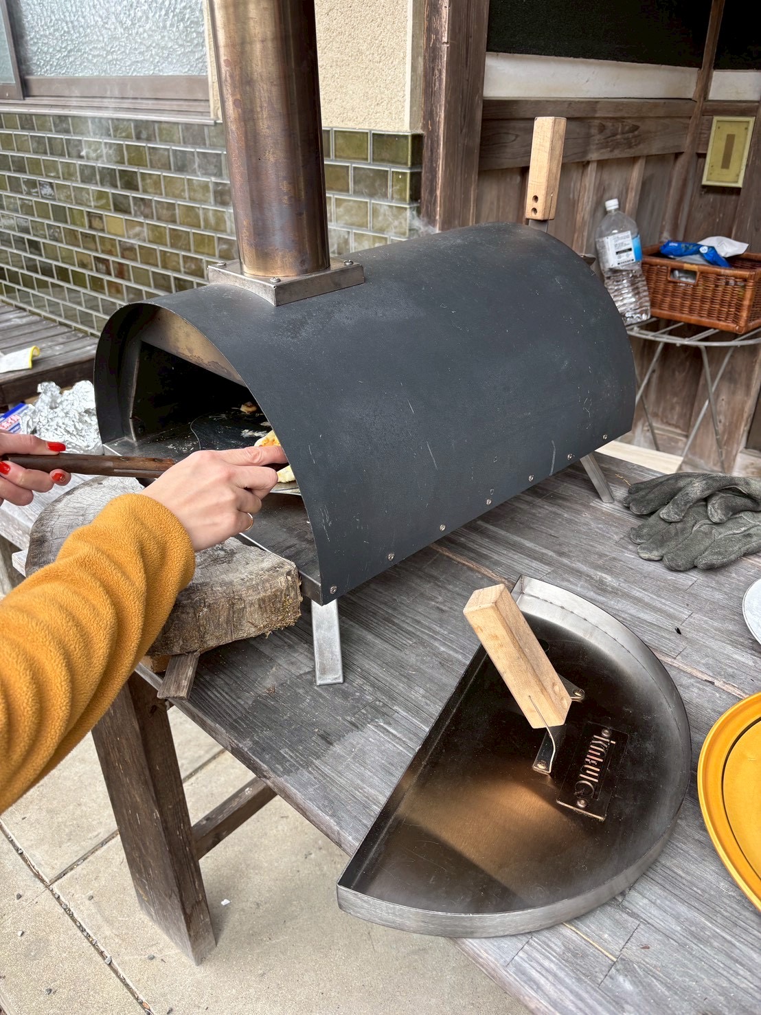 また食育も山でとってきた薪でピザを焼き