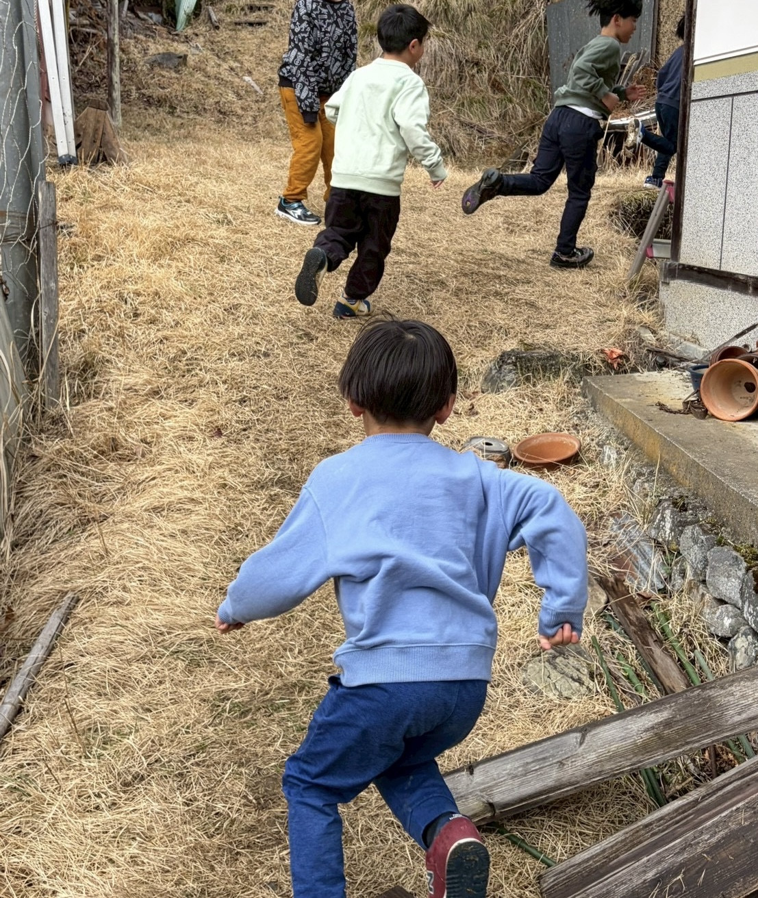 里山では鬼ごっこが定番???