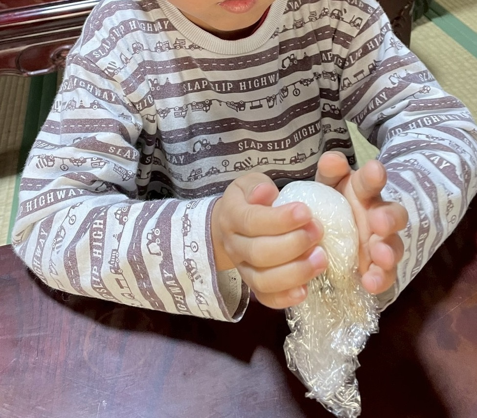 地元のお米で子どもそれぞれがおにぎりを握って