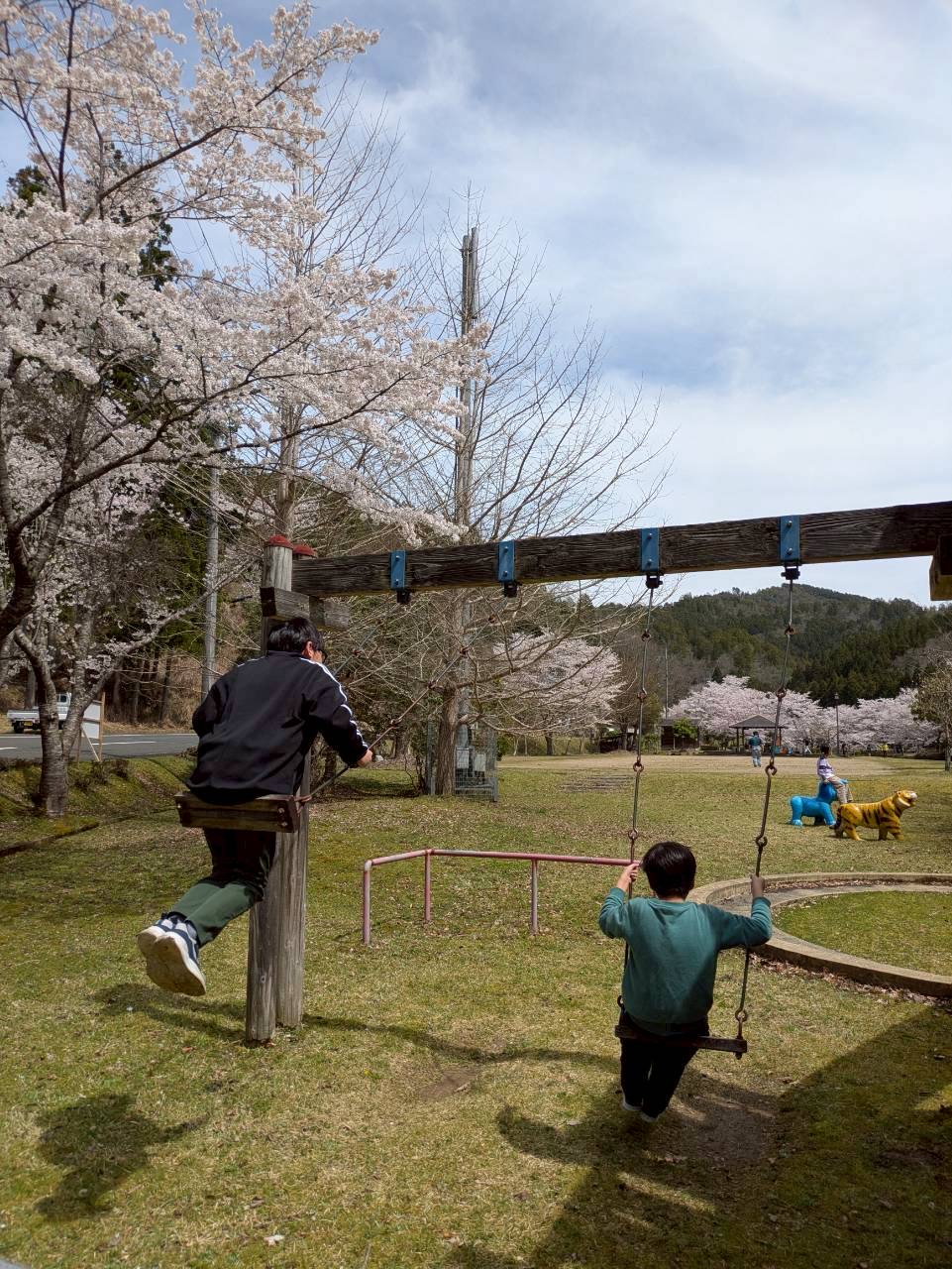里山の公園で花見を楽しんだりと